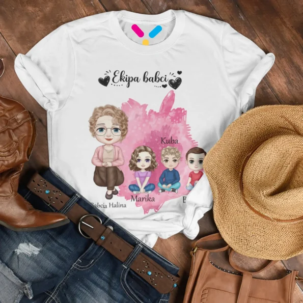 Koszulka dla babci- Ekipa babci 1-6 wnuków- Personalizowana- Prezent dla babci #030