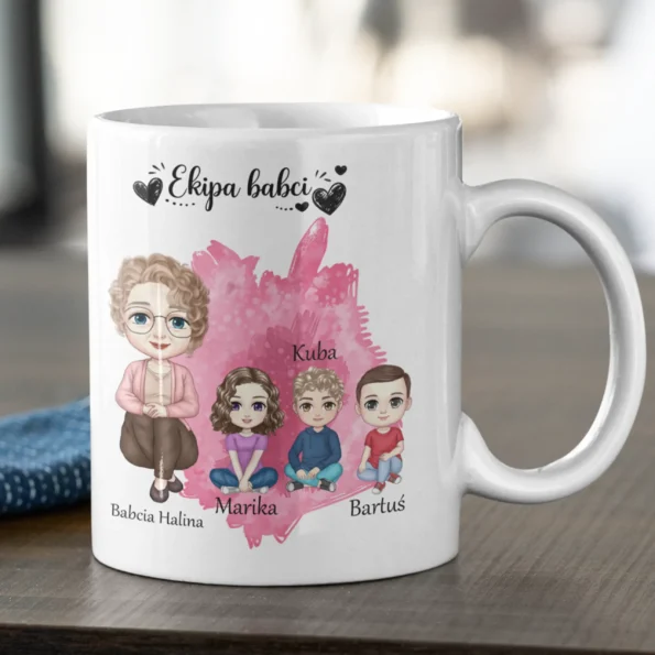 Kubek dla babci- Ekipa babci 1-6 wnuków- Personalizowany - Prezent dla babci #030