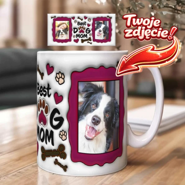 Kubek ze zdjęciem psa best dog mom dla psiej mamy z efektem IMITACJI 3D| Personalizowany #050