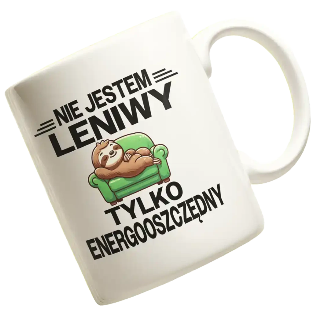 Śmieszny kubek- nie jestem leniwy tylko energooszczędny