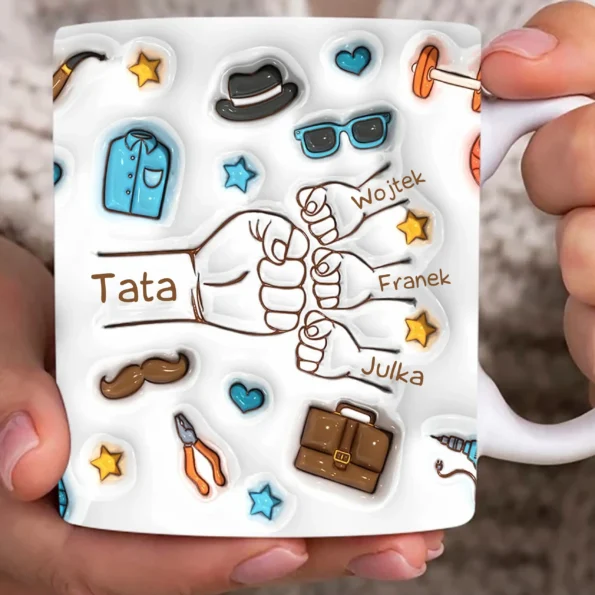 Kubek dla taty najlepszy tata na świecie z dłońmi 1-6 dzieci | Personalizowany #037