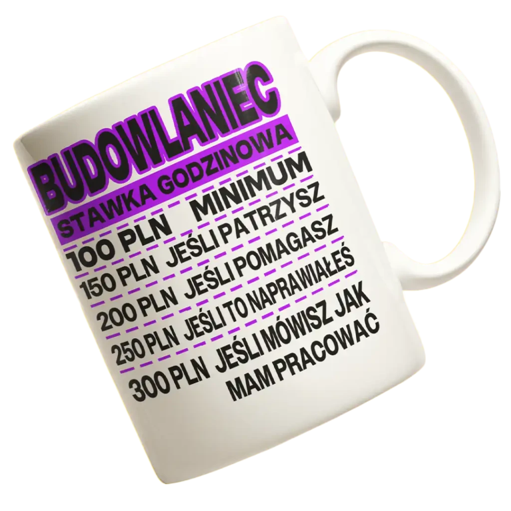 Koszulka to zawsze trafiony wybór. Możesz postawić na humorystyczny nadruk, taki jak „Superbohater na budowie” czy „Budowlaniec – ekspert od wszystkiego”. Taka koszulka to połączenie wygody z zabawnym akcentem, który doskonale nadaje się na śmieszny prezent dla budowlańca.Kubek dla budowlańca