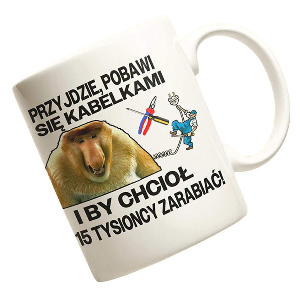 Kubek Janusz Nosacz - przyjdzie pobawić się kabelkami i by chciał 15 tysioncy zarabiać