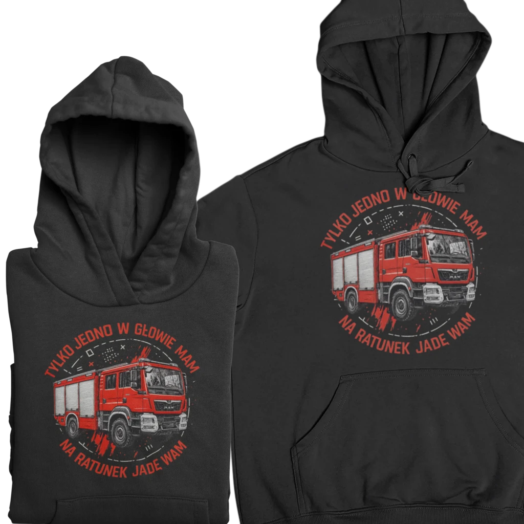 - Podkreślenie służby i przynależności Noszenie ubrania z wyrazistym nadrukiem „STRAŻ” czy spersonalizowanym hasłem oddaje dumną przynależność do formacji. Taka bluza budzi skojarzenia z zaangażowaniem i wsparciem dla lokalnej społeczności, a zarazem od razu przykuwa uwagę i zyskuje szacunek otoczenia.