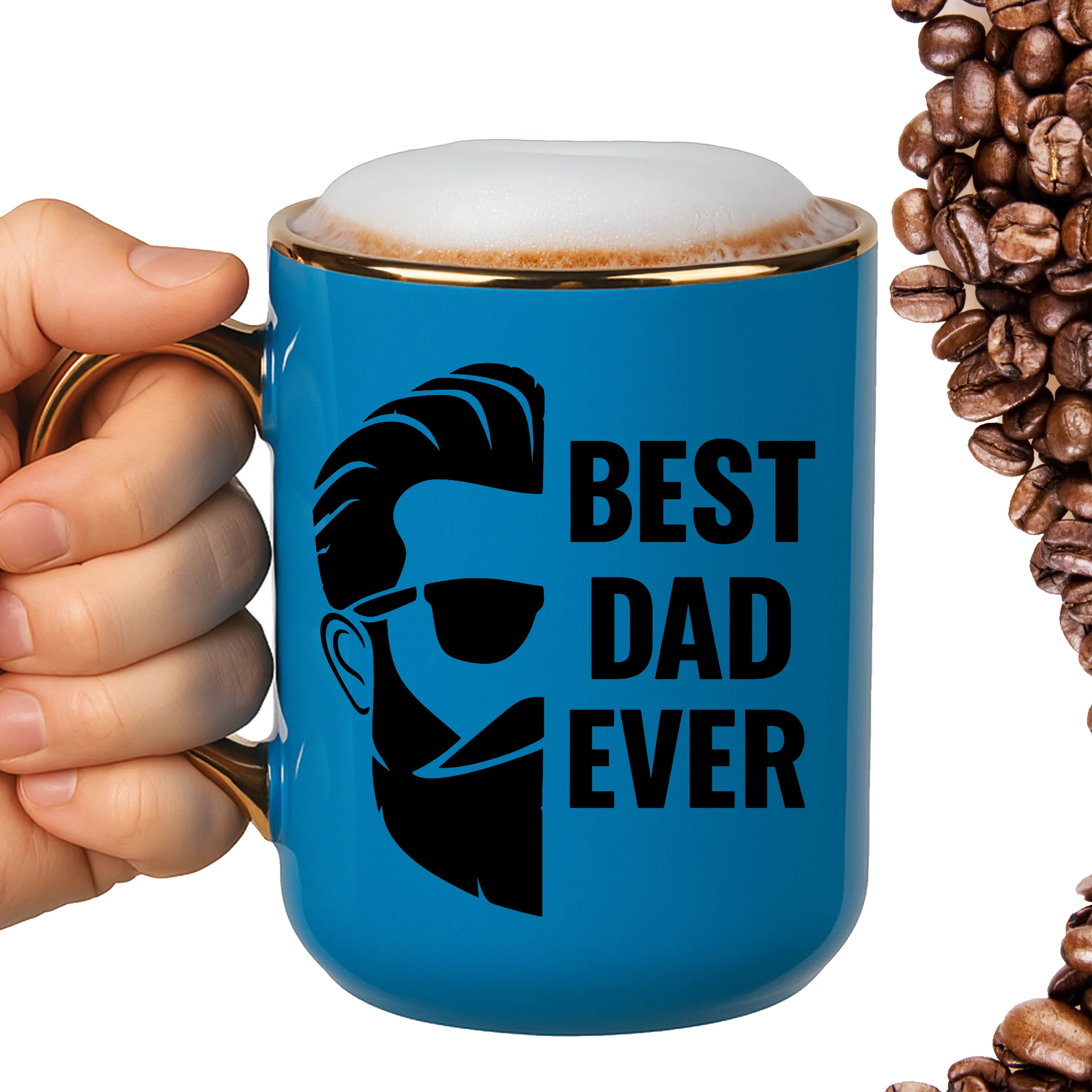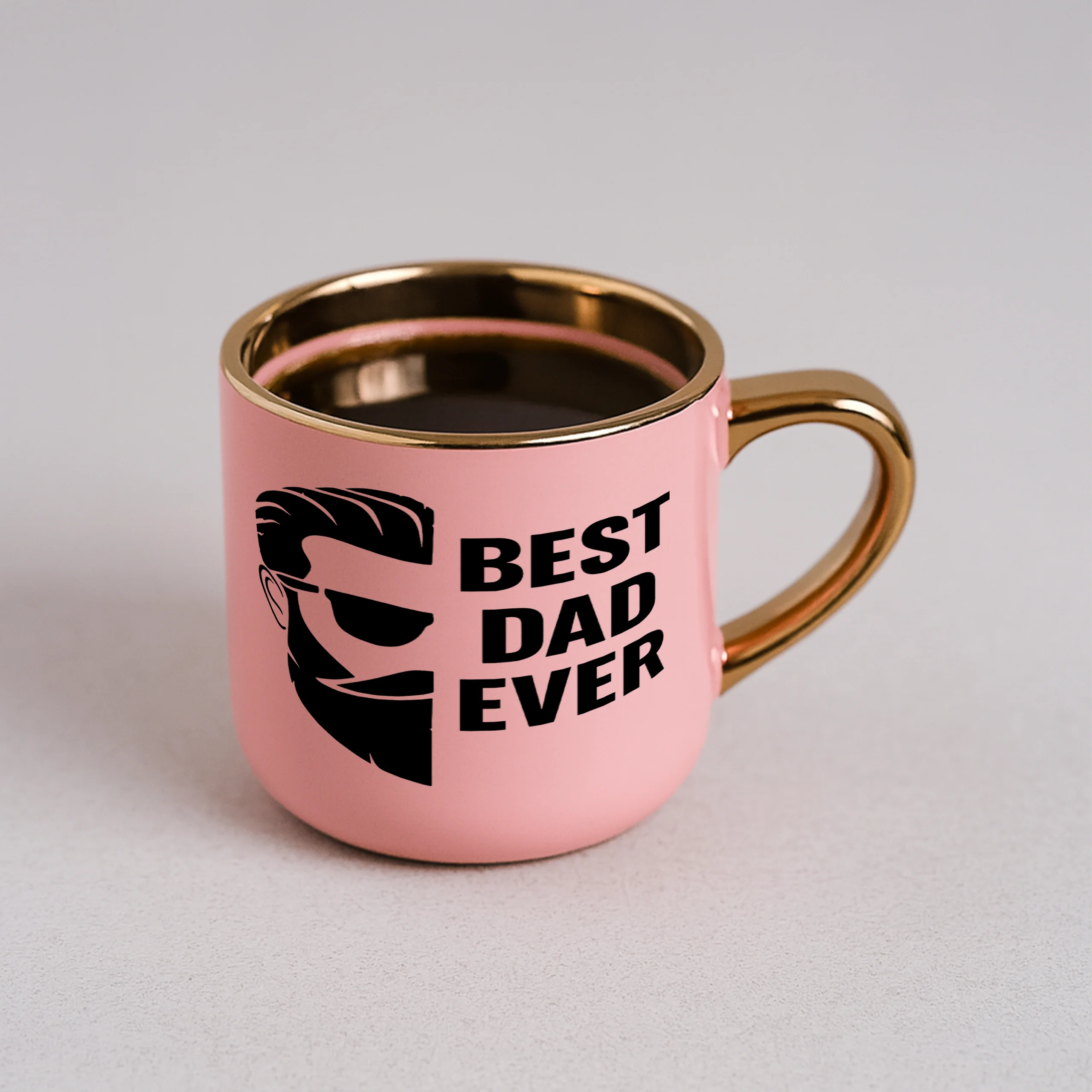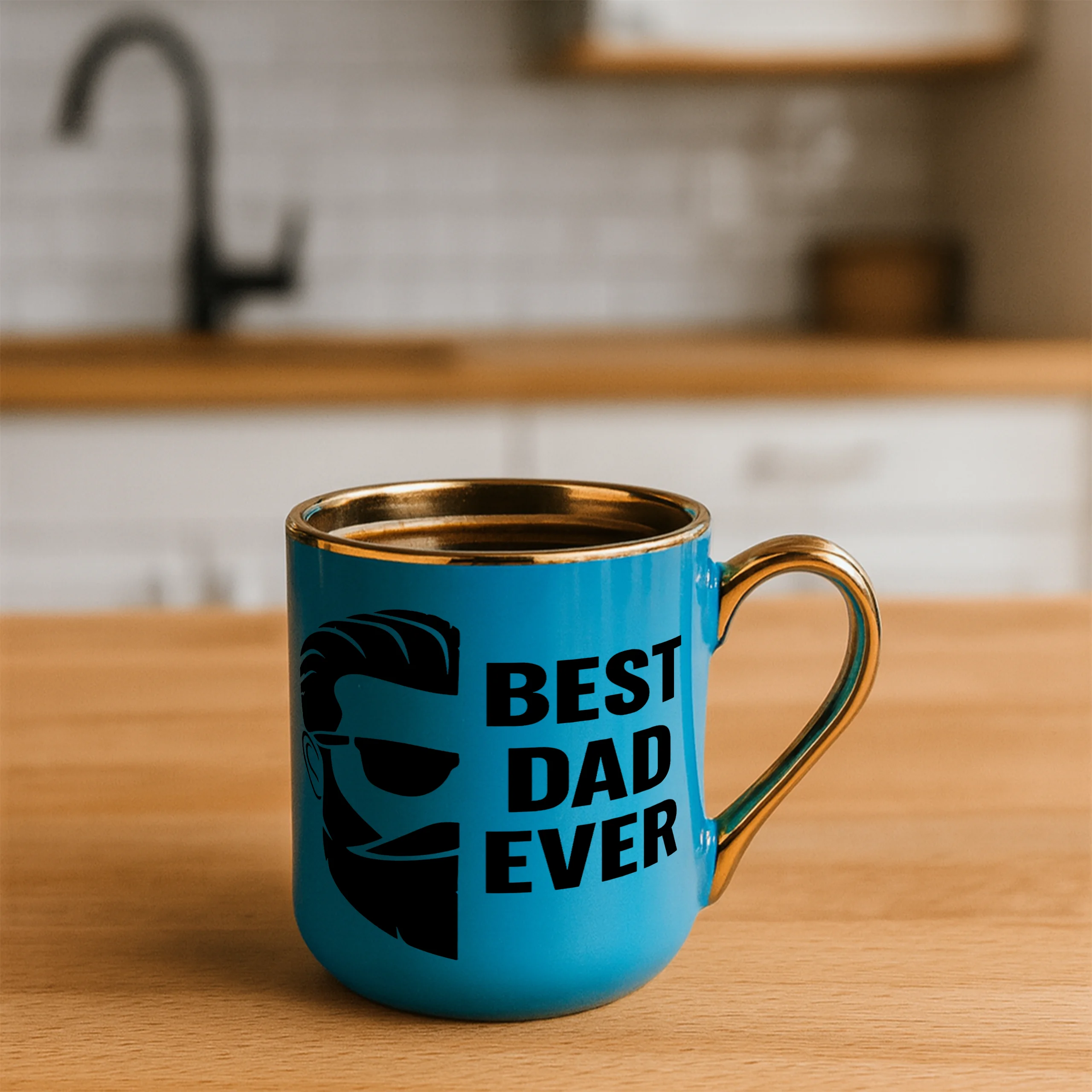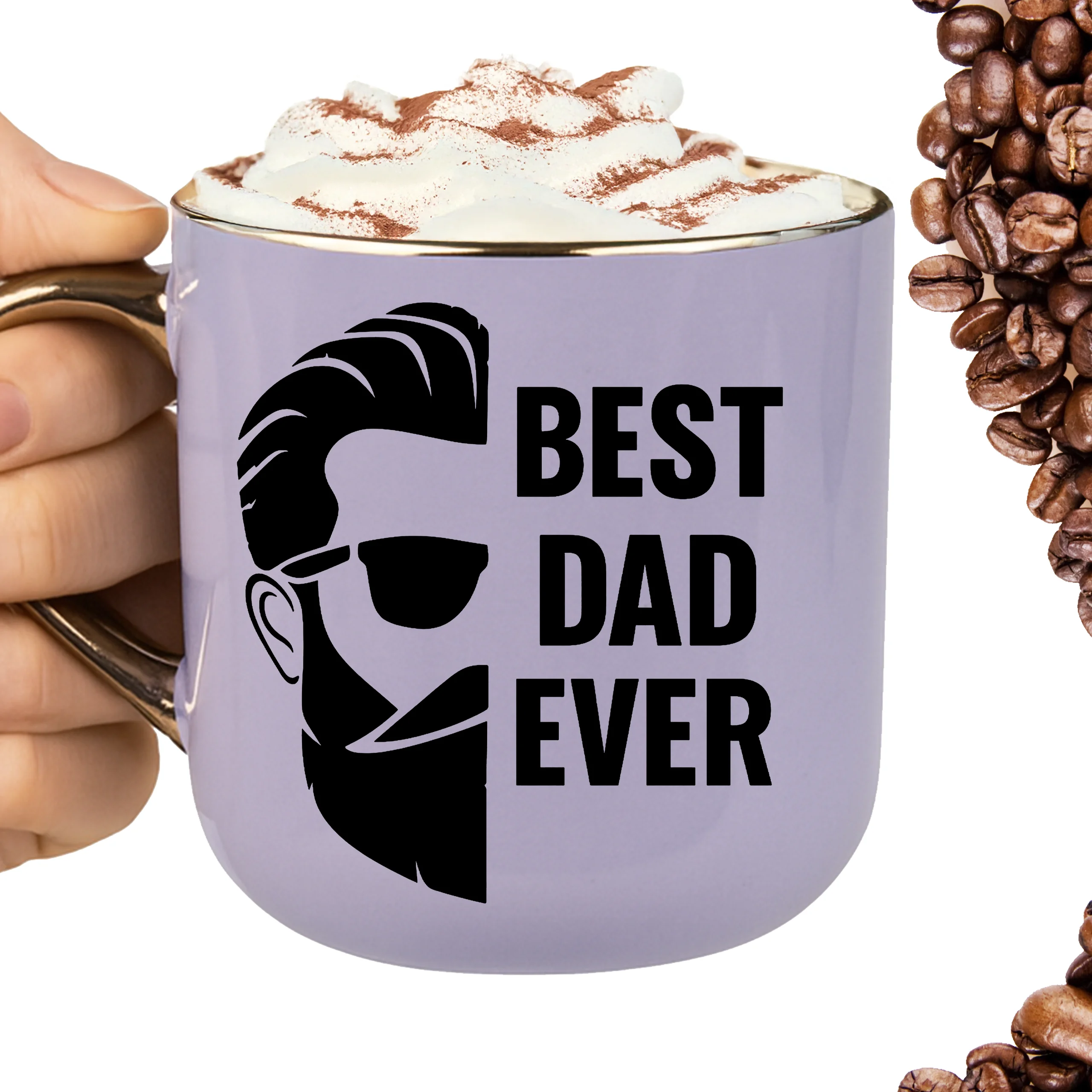 Przepiękny kubek ze złotą rączką oraz rantem z nadrukiem best dad ever