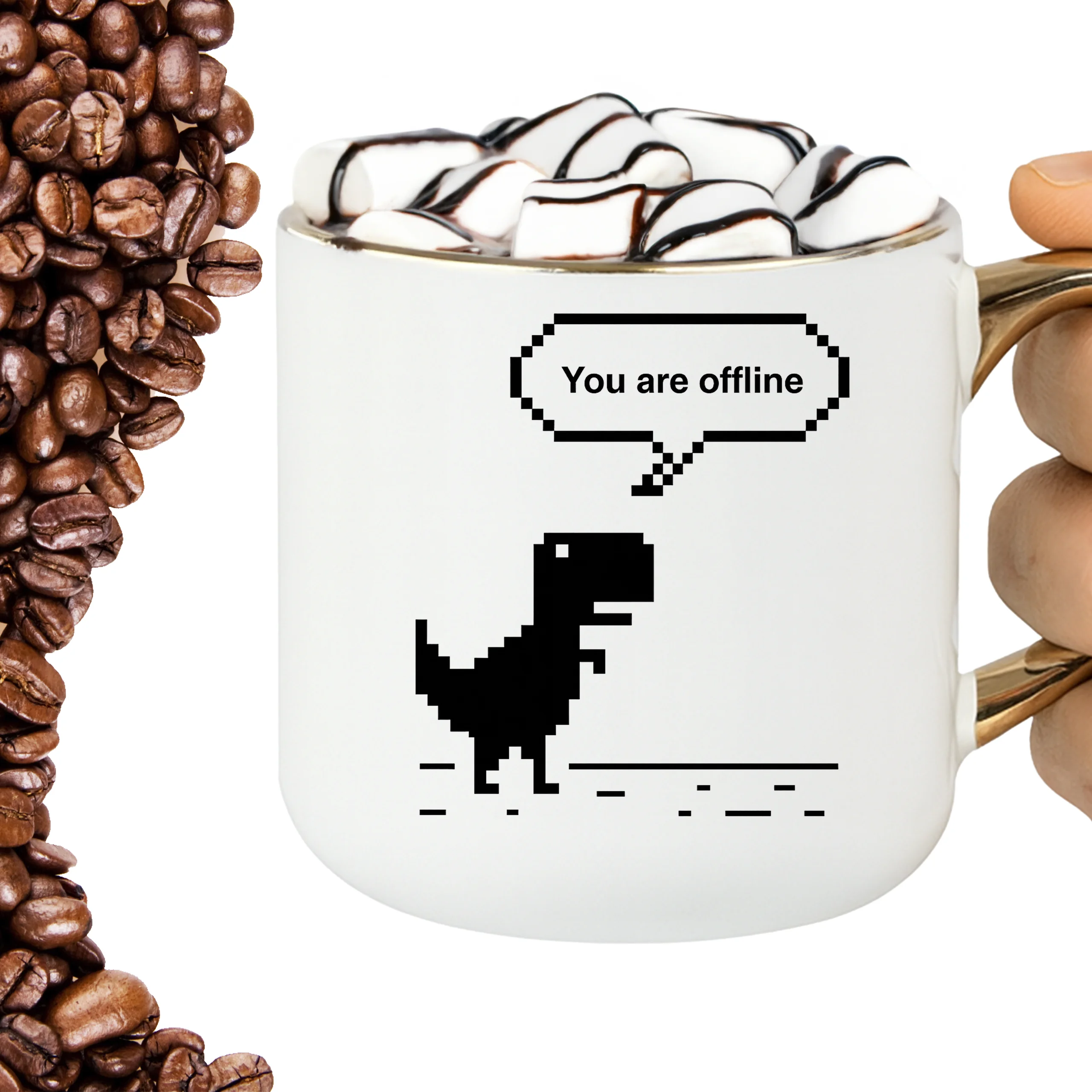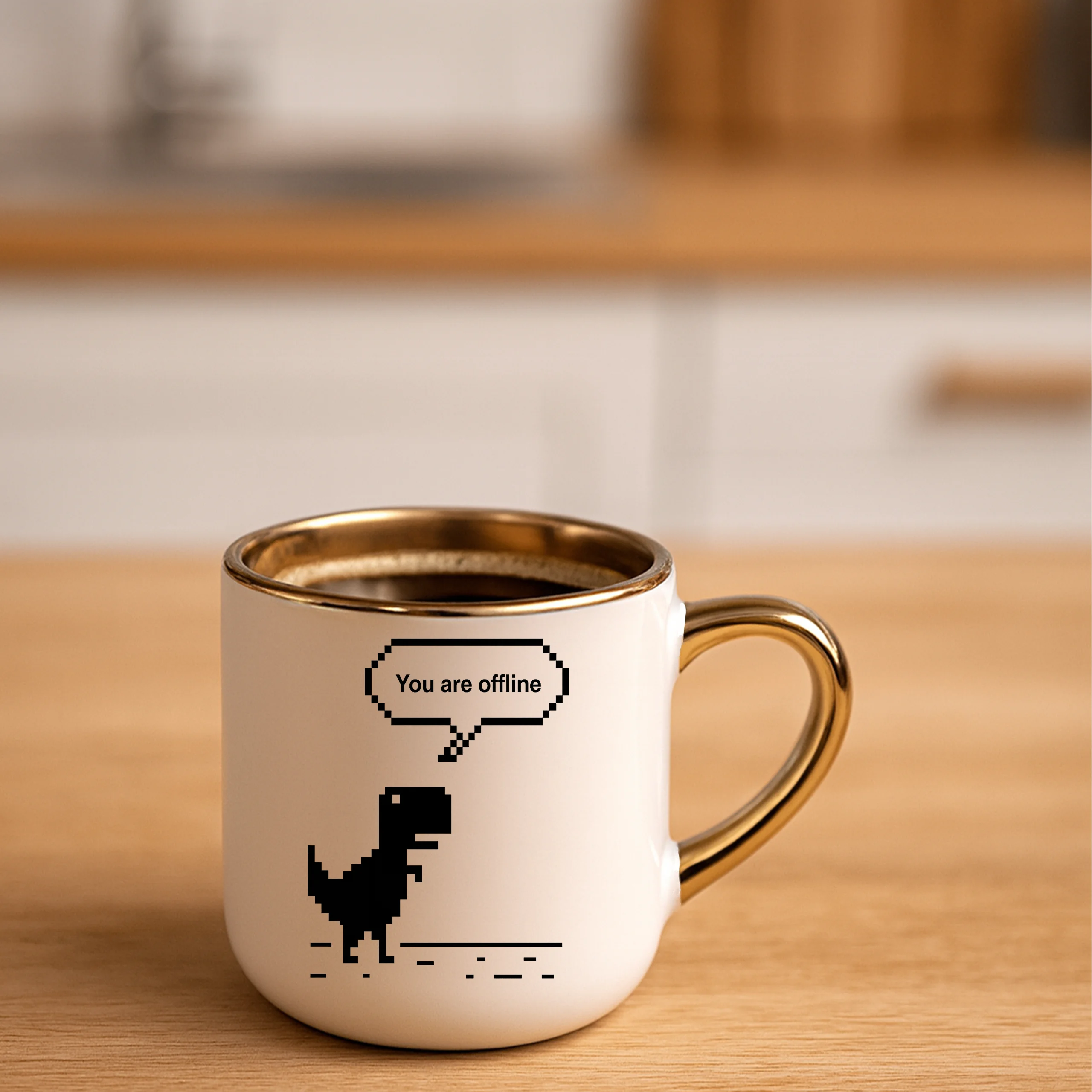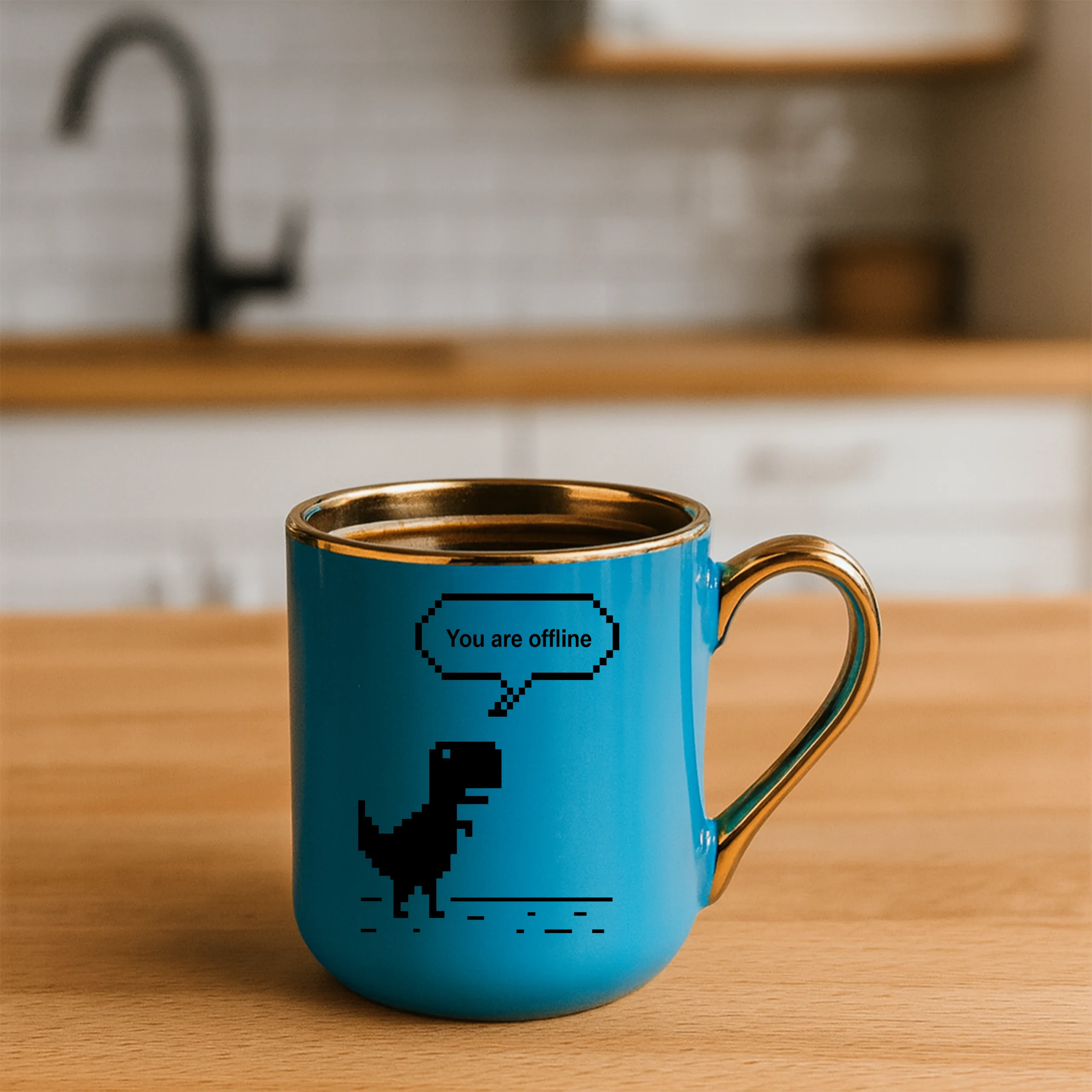 Przepiękny kubek ze złotą rączką oraz rantem z nadrukiem you are offilne
