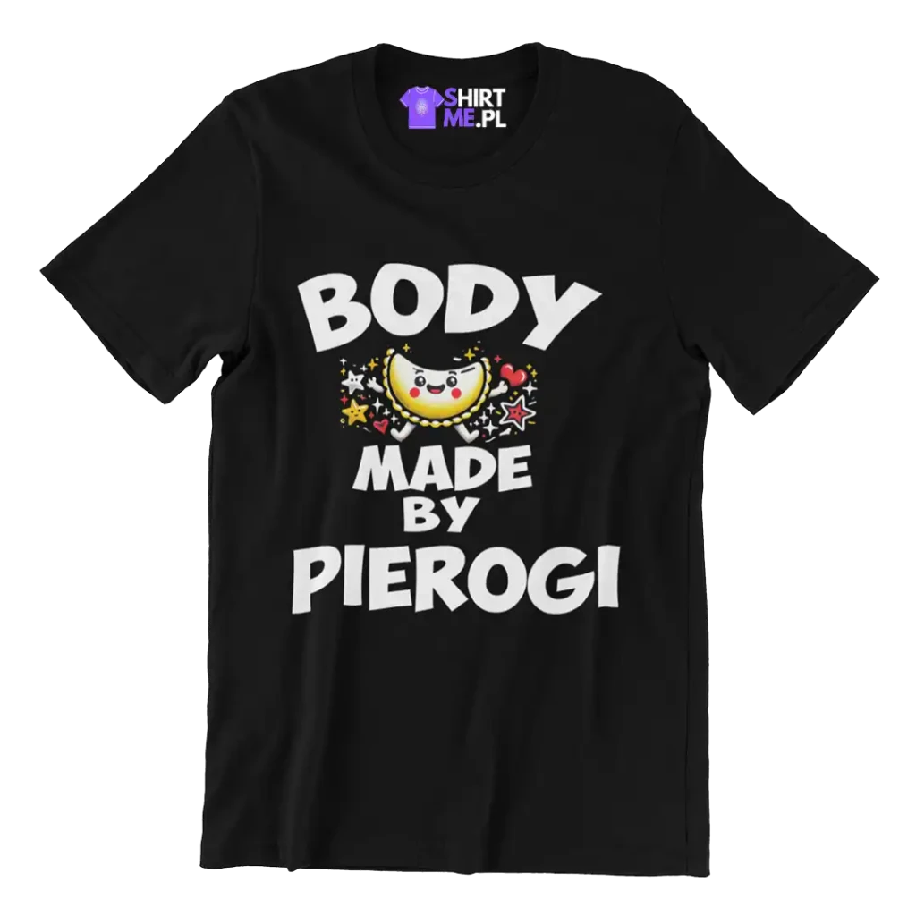 ŚMIESZNA KOSZULKA DAMSKA LUB MĘSKA Z ŚMIESZNYM NADRUKIEM BODY MADE BY PIEROGI