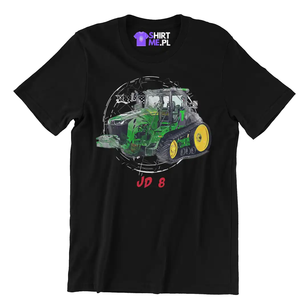 Koszulka dla rolnika. Koszulka John Deere seria 8 + możliwy własny napis/nazwa gospodarstwa/imię na plecach za dopłatą. By dodać własny napis wpisz go w polu wyżej i zaznacz opcję własny napis na plecach na tak . Ta koszulka jest idealnym prezentem dla posiadacza ciągnika John deere 8R 410, John deere 8R 370, John deere 8R 340, John deere 8R 31, John deere 8R280.