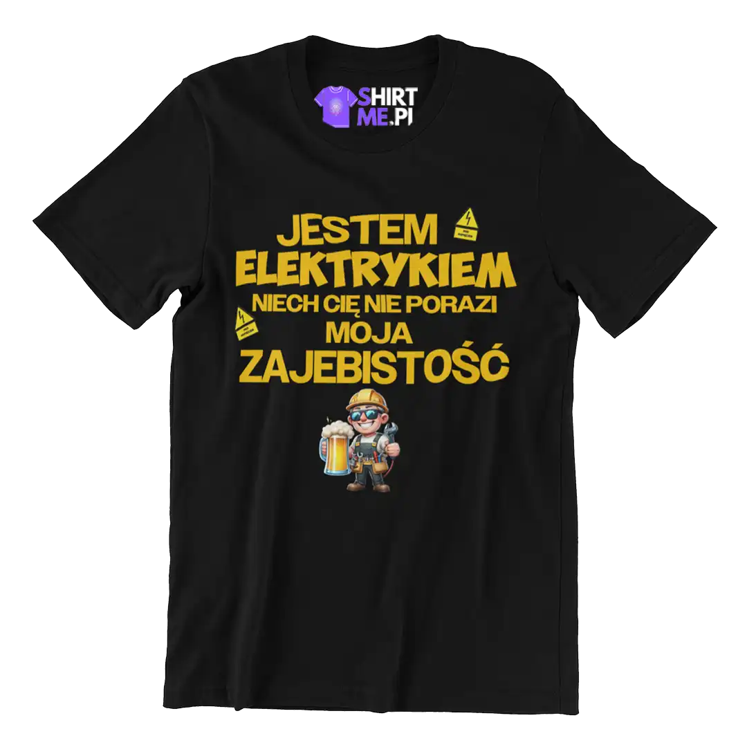 KOSZULKA DAMSKA LUB MĘSKA Z NADRUKIEM JESTEM ELEKTRYKIEM NIECH CIĘ NIE PORAZI MOJA ZAJEBISTOŚĆ SUPER PREZENT DLA ELEKTRYKA TSHIRT