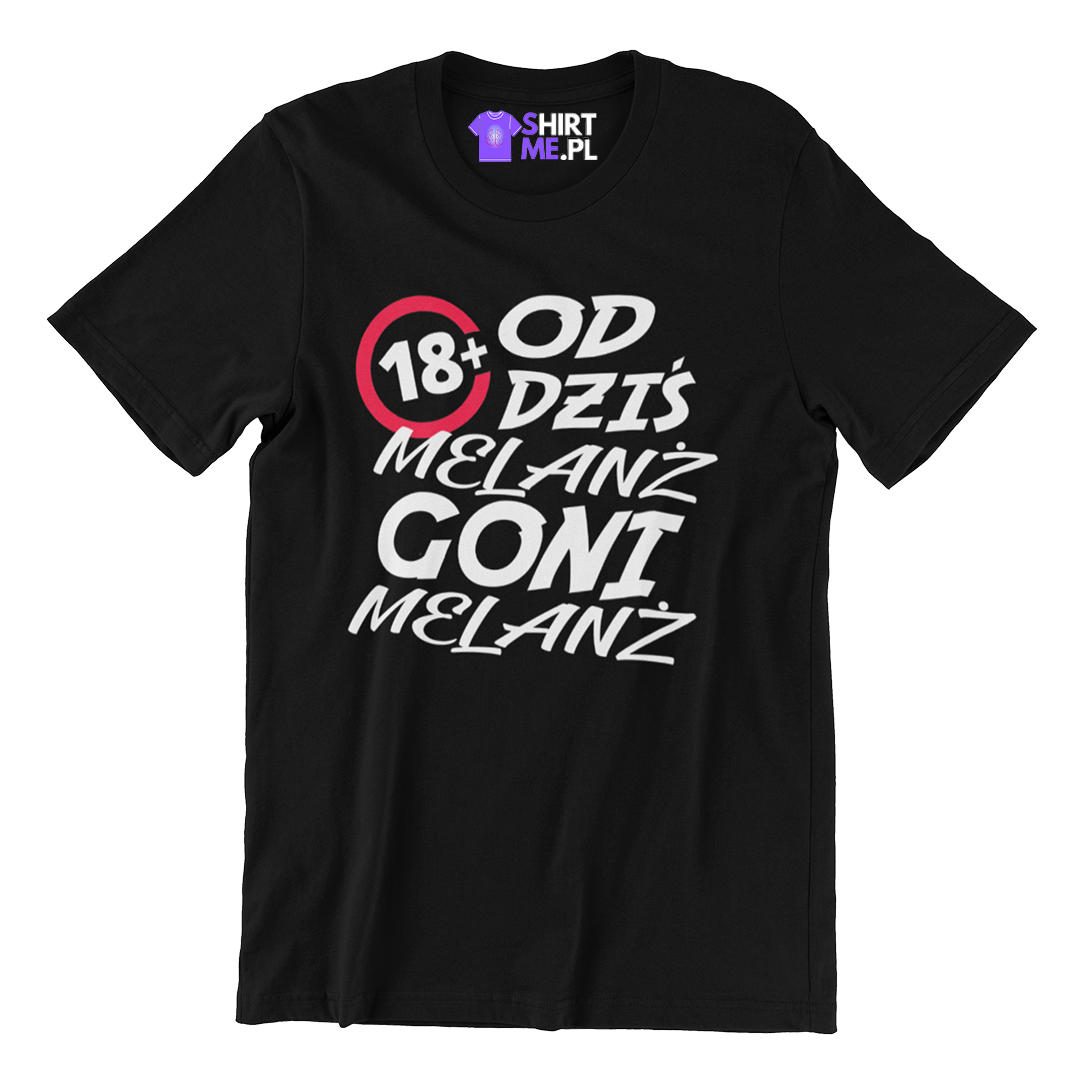KOSZULKA NA 18 URODZINY . SUPER PREZENT NA 18 URODZINY- OD DZIŚ MELANŻ GONI MELANŻ