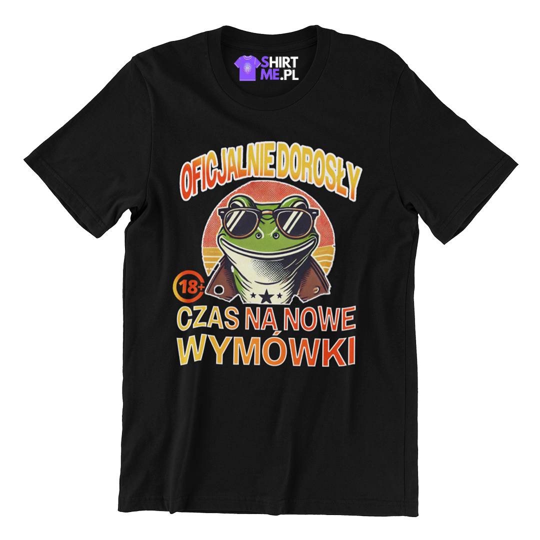 KOSZULKA NA 18 URODZINY . SUPER PREZENT NA 18 URODZINY- OFICJALNIE DOROSŁY CZAS NA NOWE WYMÓWKI