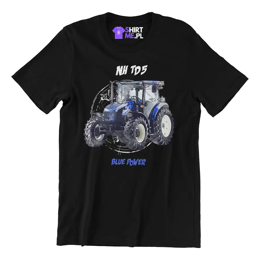 Koszulka dla rolnika. Koszulka new holland td5 + możliwy własny napis/nazwa gospodarstwa/imię na plecach za dopłatą. By dodać własny napis wpisz go w polu wyżej i zaznacz opcję własny napis na plecach na tak . Ta koszulka jest idealnym prezentem dla posiadacza ciągnika New Holland serii Td5