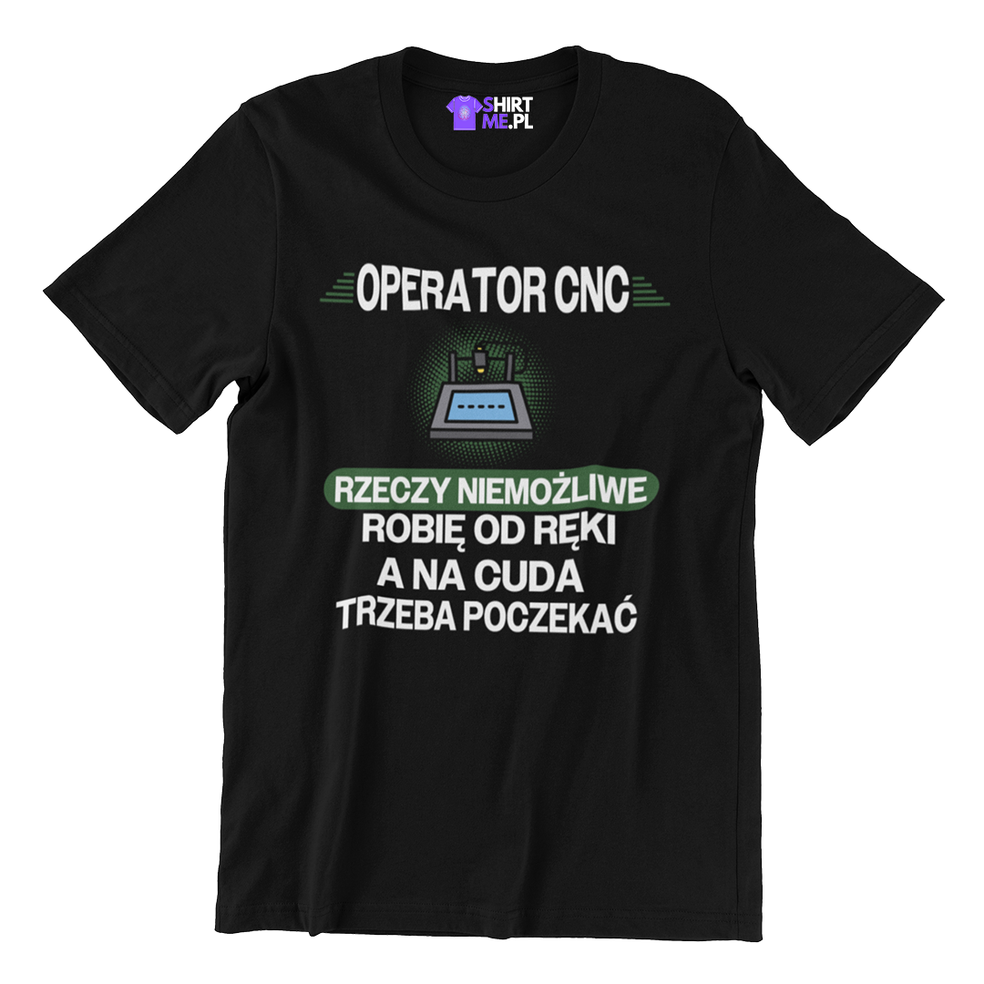 Nasza koszulka techniczna dla operatora CNC z napisem „Rzeczy niemożliwe robię od ręki, a na cuda trzeba poczekać” to doskonały wybór dla każdego specjalisty, który codziennie stawia czoła wymagającym zadaniom przy maszynach. Wykonana z wysokogatunkowej bawełny o gramaturze 190g, koszulka zapewnia maksymalny komfort i wytrzymałość. Wysokiej jakości nadruk, który bez problemu wytrzyma co najmniej dwa lata, gwarantuje trwałość i świetny wygląd.