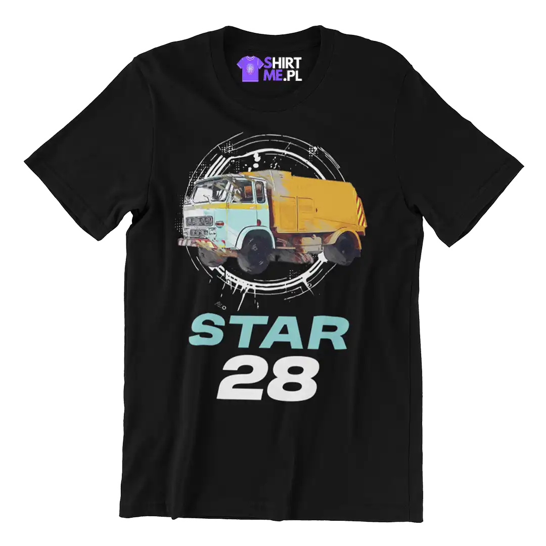 Koszulka star 28. Koszulka dla kierowcy fana motoryzacji prl. Koszulka z samochodem ciężarowym star 28