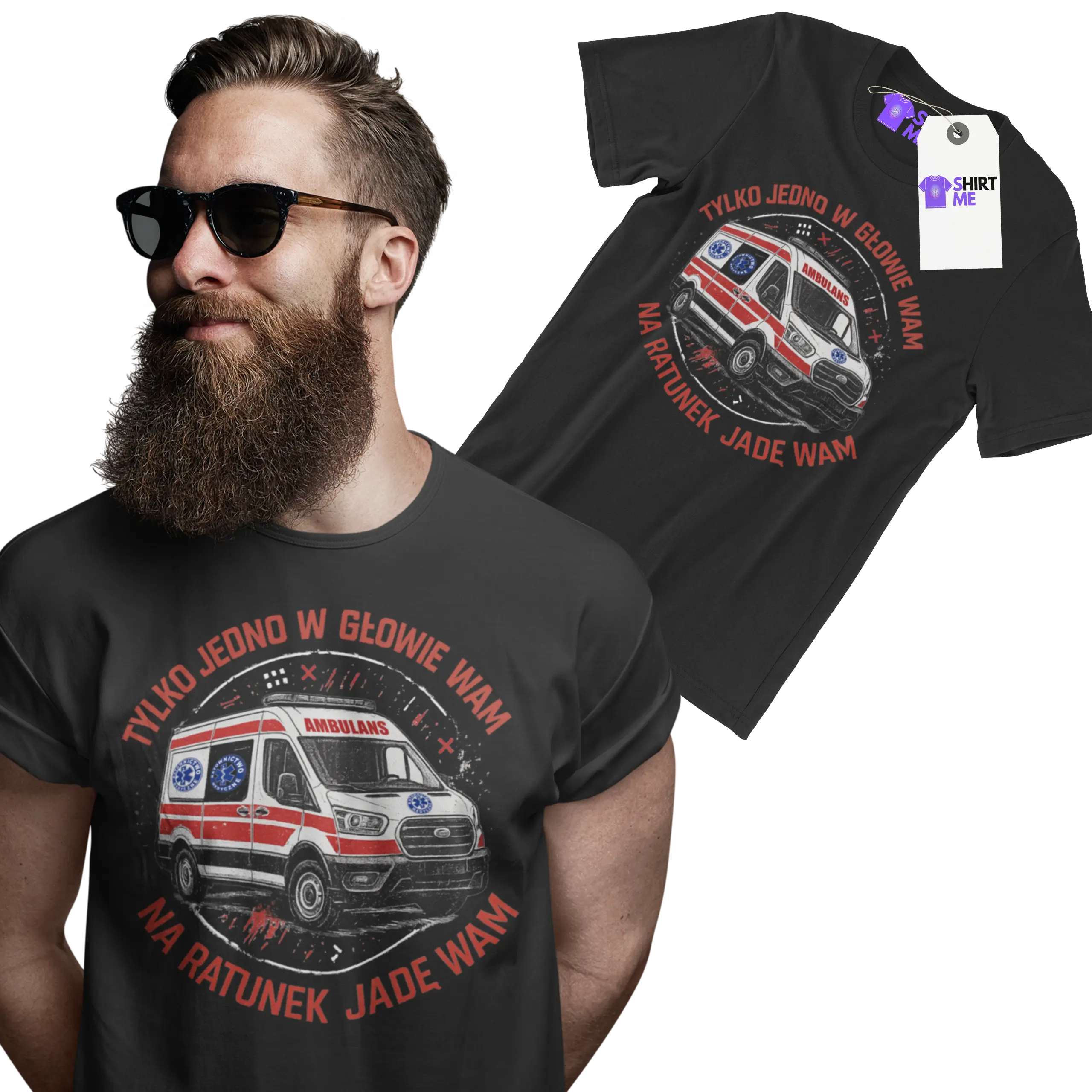 Koszulka dla ratownika medycznego tylko jedno w głowie mam na ratunek jadę wam