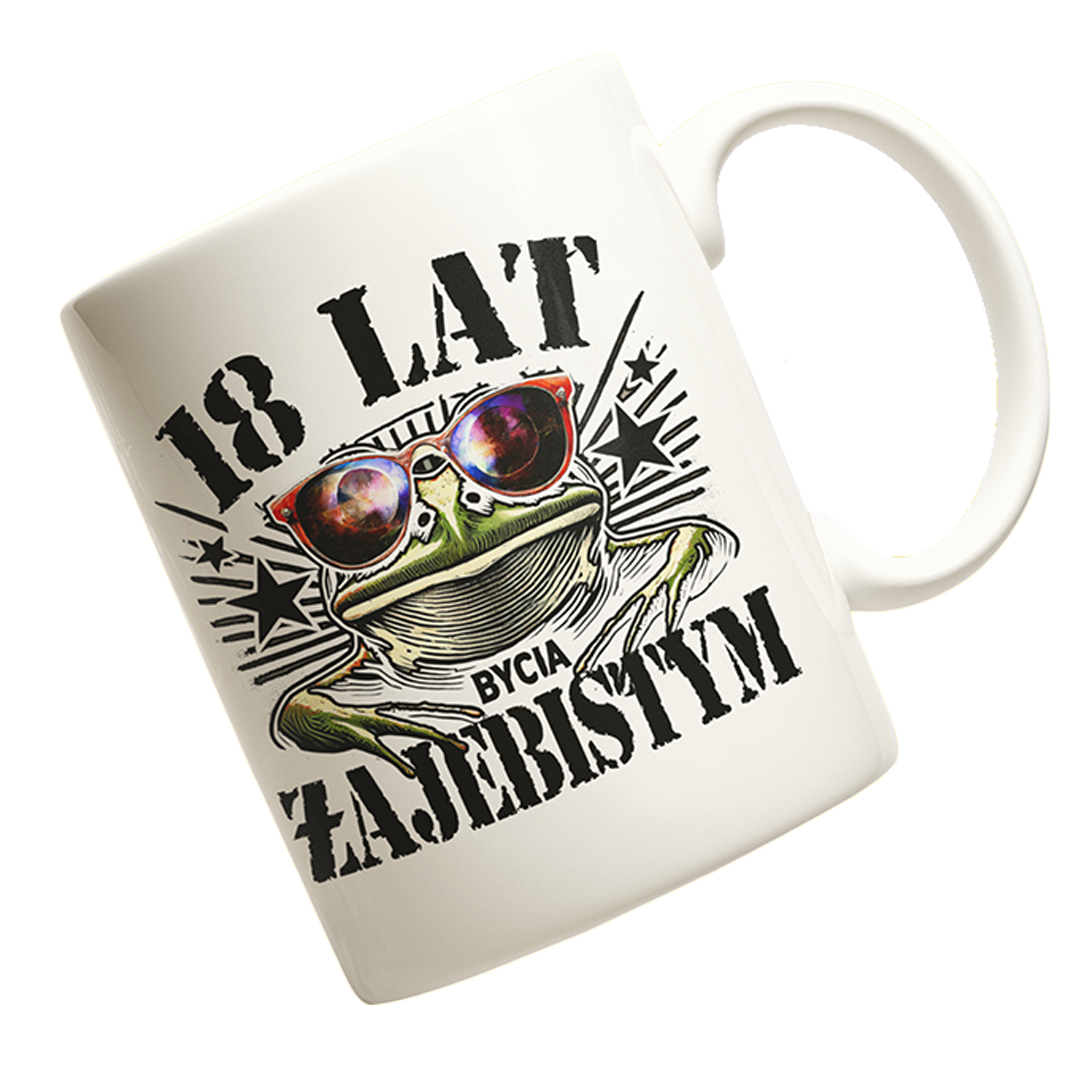 Kubek na 18 urodziny – 18 lat bycia żajebistym. Super prezent na 18 urodziny