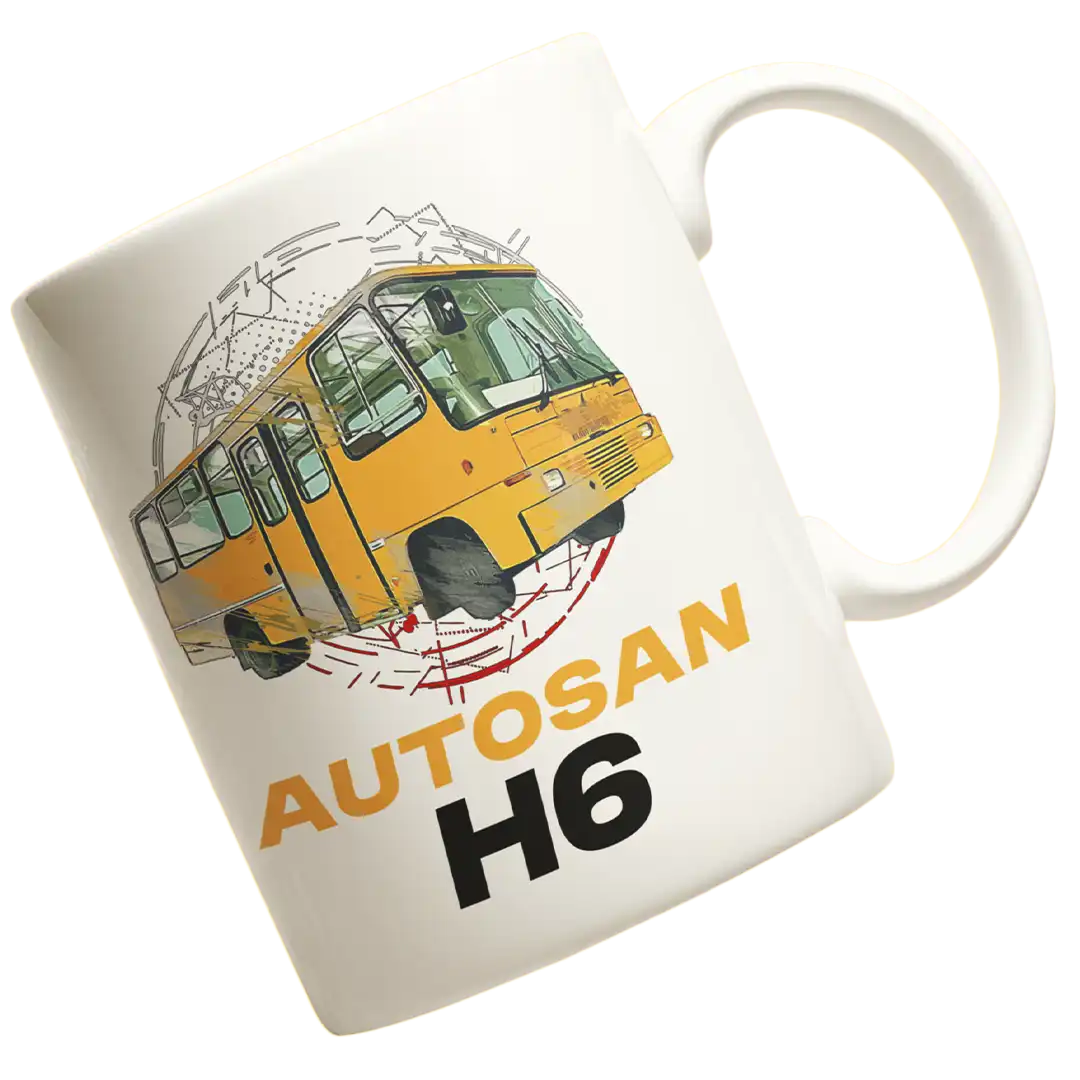 Kubek autosan h6 Kubek dla kierowcy autobusów, fana motoryzacji prl. Kubek z autobusem autosan h6