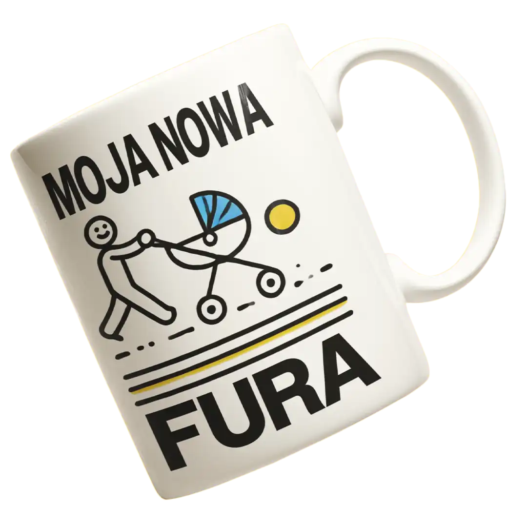 Kubek prezent dla taty, prezent na chrzciny, prezent na pępkowe. Kubek z nadrukiem moja nowa fura , prezent dla przyszłych rodziców