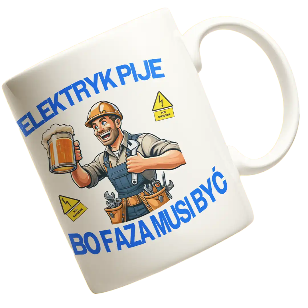 KUBEK NADRUKIEM ELEKTRYK PIJE BO FAZA MUSI BYĆ DLA ELEKTRYKA SUPER PREZENT