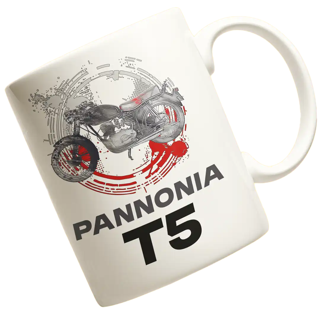 Kubek pannonia t5 Kubek z kultowym motocyklem PRL pannonia t5 Dla fana motoryzacji PRL oraz motocykla pannonia t5