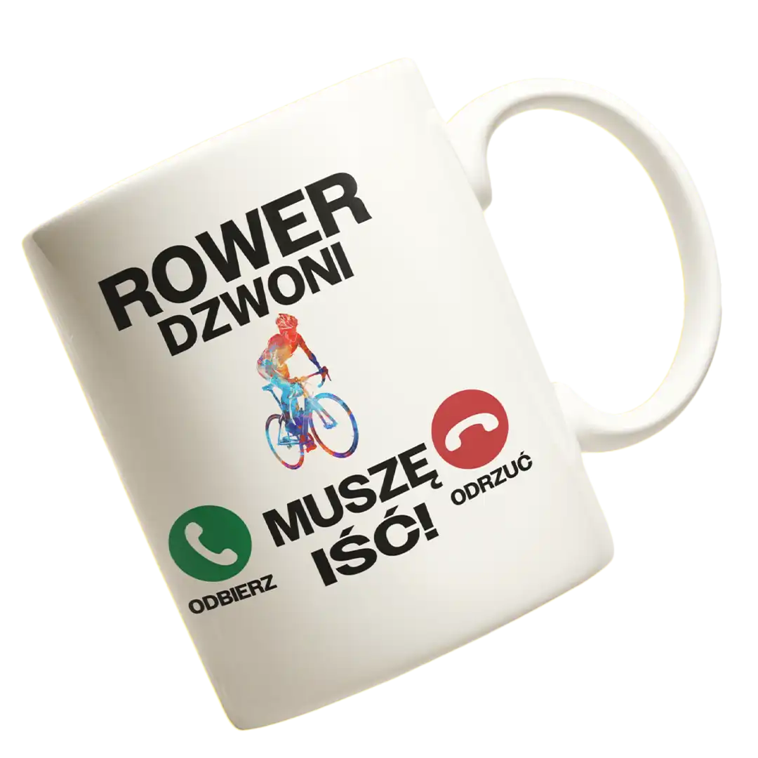 Kubek rower dzwoni muszę iść. Prezent dla kolarza