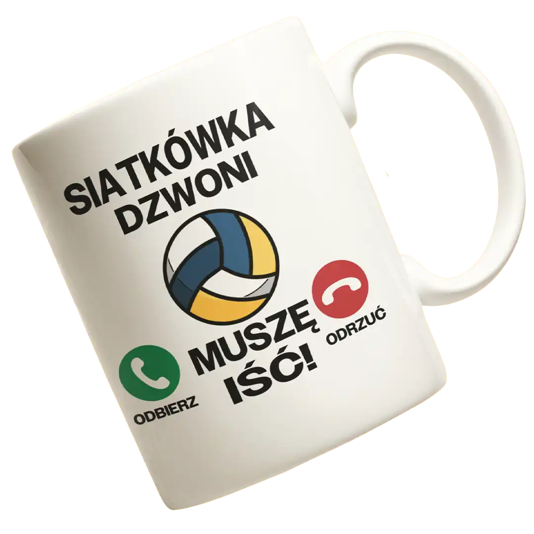 Kubek siatkówka dzwoni muszę iść. Prezent dla siatkarza