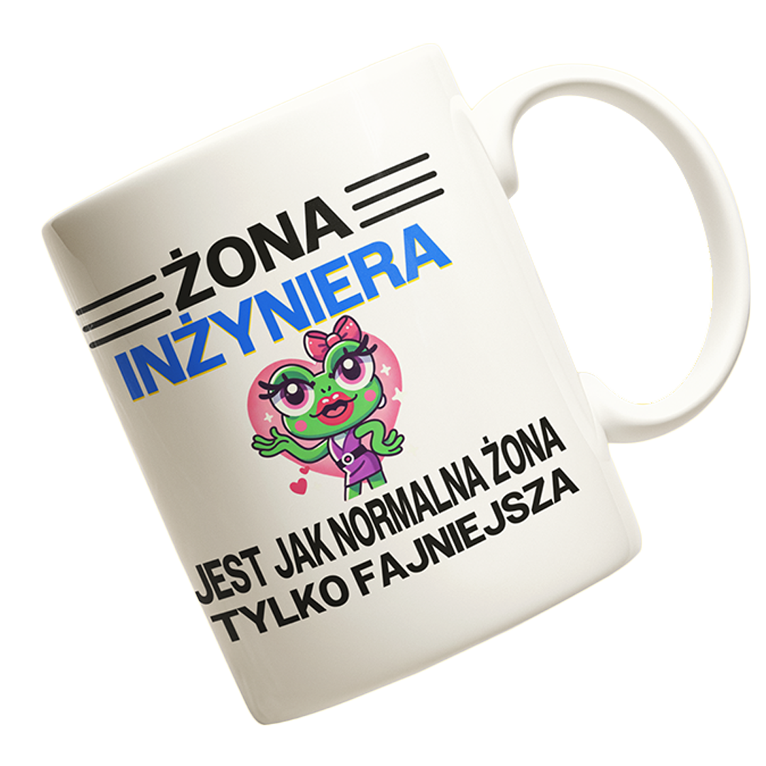 Kubek „Żona inżyniera jest jak normalna żona, tylko fajniejsza” to idealny prezent dla żony inżyniera – praktyczny i pełen humoru, który podkreśla jej wyjątkową rolę. Taki prezent dla inżyniera z pewnością sprawi radość, jednocześnie dodając humorystyczny akcent do codziennych chwil przy kawie czy herbacie. Kubek o pojemności 330 ml, wysokości 95 mm i średnicy 80 mm jest wygodny do użytku codziennego i idealnie pasuje do pracy lub domu.