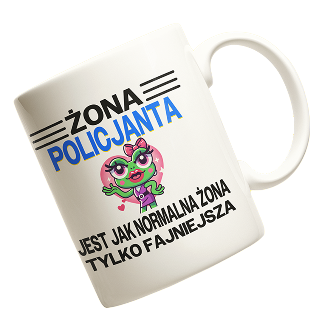 Kubek „Żona policjanta jest jak normalna żona, tylko fajniejsza” to idealny prezent dla policjanta, który podkreśla wyjątkowość jego partnerki. Taki kubek dla policjanta to nie tylko praktyczny dodatek, ale również świetna pamiątka i codzienny akcent humoru. Jako fajny prezent dla policjanta o pojemności 330 ml, wysokości 95 mm i średnicy 80 mm, kubek ten doskonale sprawdzi się w każdej kuchni lub biurze.